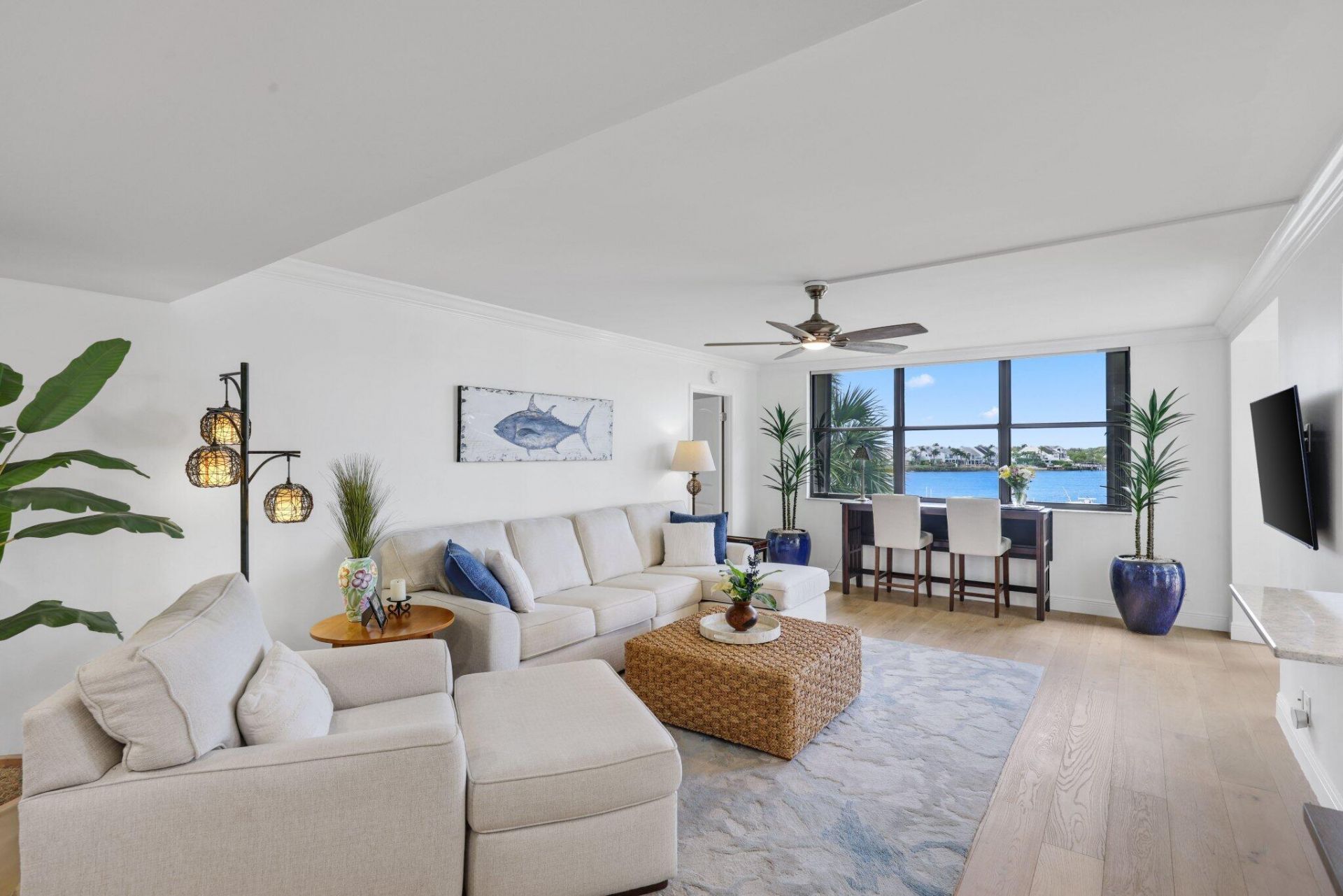 Welcome to this natural light-filled 2 bedroom, 2 bath condo premium middle building in the highly sought-after gated Intracoastal community of Jupiter Cove. This beautifully updated residence offers stunning water and marina views from every room, creating a bright and airy coastal feel throughout. The home features a newly renovated kitchen and bathrooms, stylish upgraded tile and cabinetry, light wash engineered hardwood flooring, sleek roller shades, and fresh finishes throughout. Additional updates include a brand-new A/C (2026), new water heater (2023) making this home truly move-in ready. One covered parking space included + designated outdoor storage shed with space for bicycles. Jupiter Cove offers an exceptional waterfront lifestyle with many amenities including; pickleball, tennis courts, pool, clubhouse, fitness room, and Pelican Park, exclusive to Jupiter Cove residents-complete with grills, a tiki bar, dining areas, and kayak/paddleboard storage right along the Intracoastal. Boating enthusiasts will love the easy access with no fixed bridges and the Jupiter Inlet just minutes away. Boat slips are available for lease or purchase. Ideally located close to waterfront restaurants, shopping, pristine beaches, and PBI Airport-this is South Florida living at its finest.