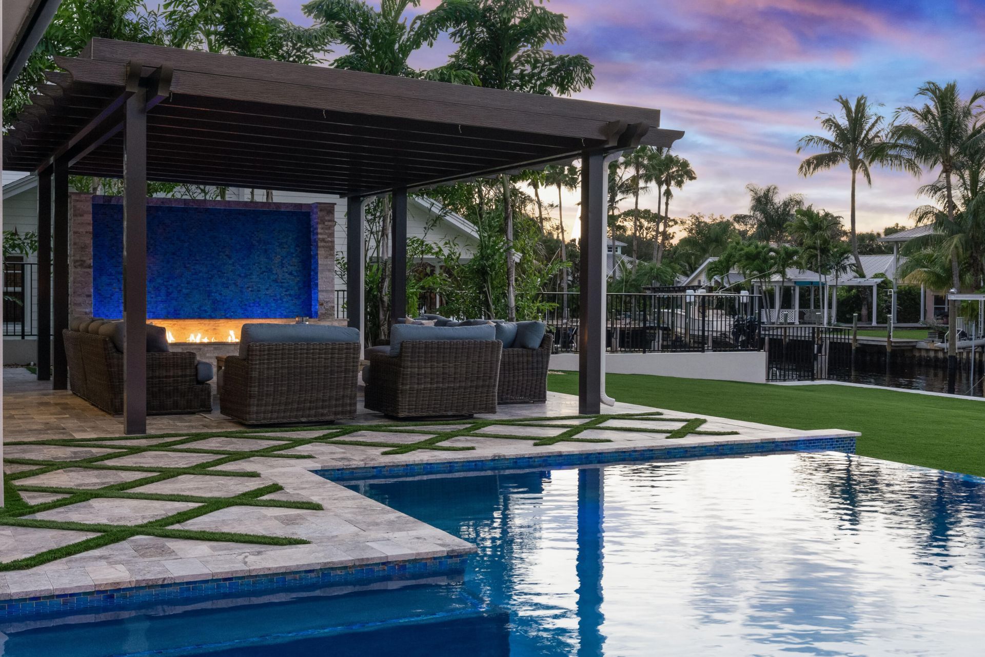 Experience unparalleled waterfront luxury at 261 Old Jupiter Beach Road in prestigious Jupiter, Florida. This immaculate 2019-built waterfront estate home offers direct ocean access and breathtaking views of the iconic Jupiter Lighthouse-a rare combination that defines true South Florida coastal living. Spanning approximately 7,000 square feet, this meticulously designed 6-bedroom, 7.5-bath residence is the epitome of refined elegance and effortless entertaining. Step into a world of sophistication where every detail has been curated to perfection. The expansive floor plan features dual grand master suites (one on the first floor and one on the second), dual laundry rooms, and sweeping water views from nearly every room. Custom millwork, a state-of-the-art home theater, and countless high-end upgrades create an atmosphere of understated luxury. The backyard is a true showstopper-purpose-built for unforgettable gatherings. Center stage is a stunning saltwater infinity-edge pool with fire features, floating steps leading to a sunken spa, and a dramatic poolside water and fire wall. Whether hosting sunset cocktails or lively poolside parties, this outdoor oasis delivers resort-style living right at home. Additional highlights include a whole-house generator for peace of mind and a deep water dock that easily accommodates mega yachts and large sportfishing boats. With no fixed bridges and just minutes to the Jupiter Inlet, this is a boater's and fisherman's dream come true-offering effortless access to the Atlantic Ocean and world-class fishing grounds. Perfectly positioned in one of Jupiter's most sought-after waterfront enclaves, this exceptional estate blends privacy, prestige, and an unbeatable location. Live the South Florida lifestyle you've always envisioned-where every day feels like a vacation. Don't miss this rare opportunity to own a turnkey waterfront masterpiece.
