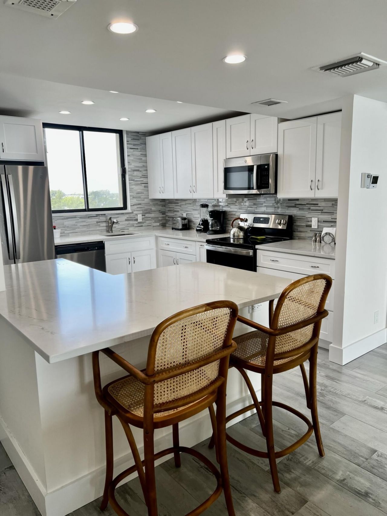 Direct oceanfront 2 bed, 2 bath furnished condo in Ocean Trail with an unobstructed East ocean view. This 5th floor END UNIT was COMPLETELY RENOVATED in 2022. All new kitchen features newer appliances and sleek quartz counters. Porcelain tile throughout. Fresh new bathrooms. Larger oceanfront balcony welcomes outdoor dining and relaxation. King main bedroom with twin beds in the guest room. Clean, tidy, and well maintained. 24 hour gated entrance, 9 tennis courts with seasonal onsite pro, pickle ball, heated pools, spa, sauna, grilling station, fitness room, seasonal social activities, secure under building parking, and of course direct beach access. Off seasonal rental rate is $4500 / month with a 3 month minimum. Open June 1, 2026 for any time period. Seasonal rate is $9000 / month with a 4 month minimum. Tax rate is 12.5% for rentals 6 months or less All utilities are included in the rental rate with the exception of electric. Owner pays the first $100 and the tenant pays electric charges over $100 / month. $150 condo application fee. $250 exit clean fee. $4000 damage deposit