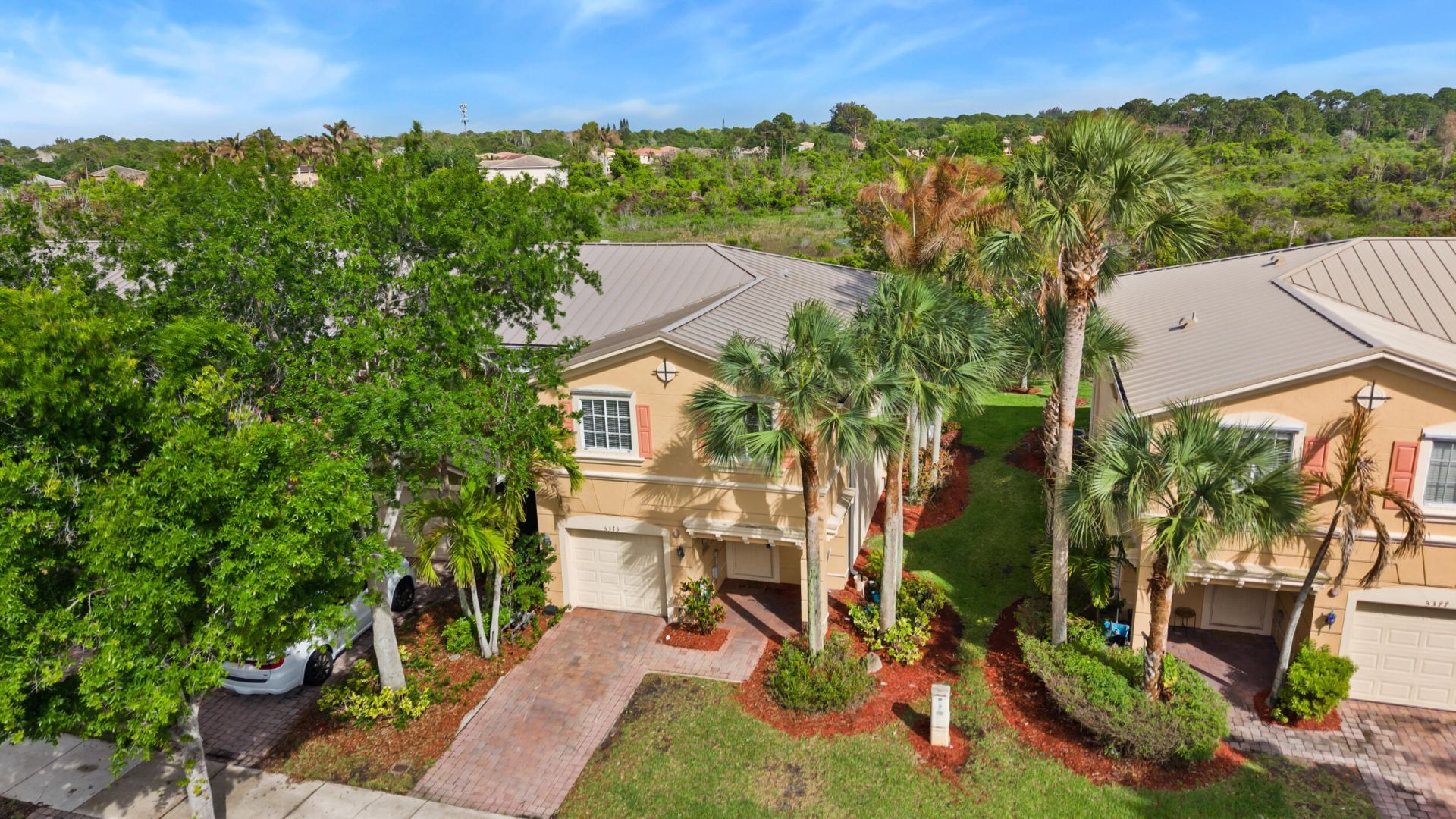 Spacious and light-filled 3-bedroom, 2.5-bath end-unit townhome with a one-car garage in the highly sought-after Martins Crossing. This coveted end unit offers additional windows and abundant natural light throughout. Situated on one of the largest lots in the community and backing to a private preserve, the home provides both space and a peaceful, private setting. Featuring the largest floor plan available, it has been well maintained and is truly move-in ready. Interior highlights include fresh paint, newer stainless steel kitchen appliances, new carpet on the stairs and loft, and durable LVP flooring in all bedrooms. The backyard offers excellent potential to be fenced or screened for added privacy and outdoor living. A new metal roof adds long-term value and peace of mind. Martins Crossing offers low HOA fees along with impressive amenities, including two community pools, a clubhouse, fitness center, tennis courts, and sidewalks with street lighting. HOA dues also cover cable, internet, and lawn care for added convenience. Enjoy a low-maintenance lifestyle without sacrificing space, all in a prime location just minutes from I-95.